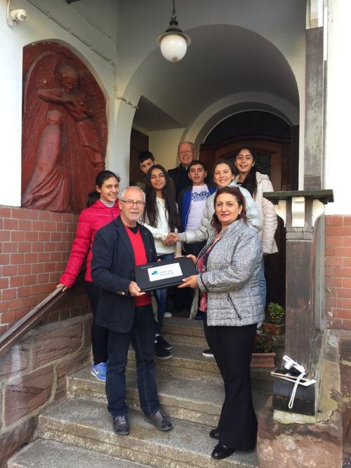 Das Gymnasium des CJD Droißig hat seit Jahren eine enge Partnerschaft mit einer armenischen Schule in Jerewan. Seit 4 Jahren gibt es einen gegenseitigen Schüleraustausch. Im Augenblick sind 2 Jungen und 4 Mädchen der Schule Nummer 6 in Yerevan Hakob Krapenz mit ihrer Lehrerin zu Besuch. Gestern waren Sie in Eisenberg. Wir waren begeistert über die guten Deutschkenntnisse der 14-jährigen, die uns Märchen der Gebrüder Grimm vorgelesen haben.?Herr Frankenstein als Vertreter der Stiftung PhosZoe – Licht und Leben übergab im Rahmen des Stiftungsprojektes „Bildungsgerechtigkeit und Bildungschancen für alle“ der Lehrerin einen Laptop für das deutsche Kabinett der Schule, um diesen erfolgreichen Weg auch weiterhin zu unterstützen und interessant zu gestalten.